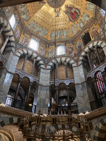Aachen Cathedral (Aachener Dom) was built by Emperor Charlemagne around 800 AD – and his presence is still very much felt. He is buried there, quite noticeably.