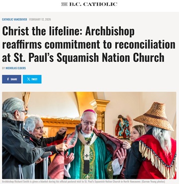 Archbishop Richard Smith drew on Indigenous imagery to speak about faith and reconciliation at St. Paul’s Squamish Nation Church in North Vancouver, telling parishioners that Christ is the weaver who binds humanity together. . . .