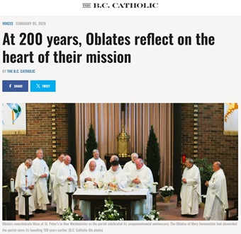 As Fr. Luis Ignacio Rois Alonso, OMI Superior General, said during a January 24 homily focused on the Oblates at St. Peter’s Church in New Westminster: