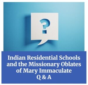 A Q&A page on the OMI Lacombe site answers several questions about residential schools, including: Did the Oblates run Indian Residential Schools?, Have the Oblates apologized?, Why have the Oblates refused to release their records? and Will the Oblates pay compensation?